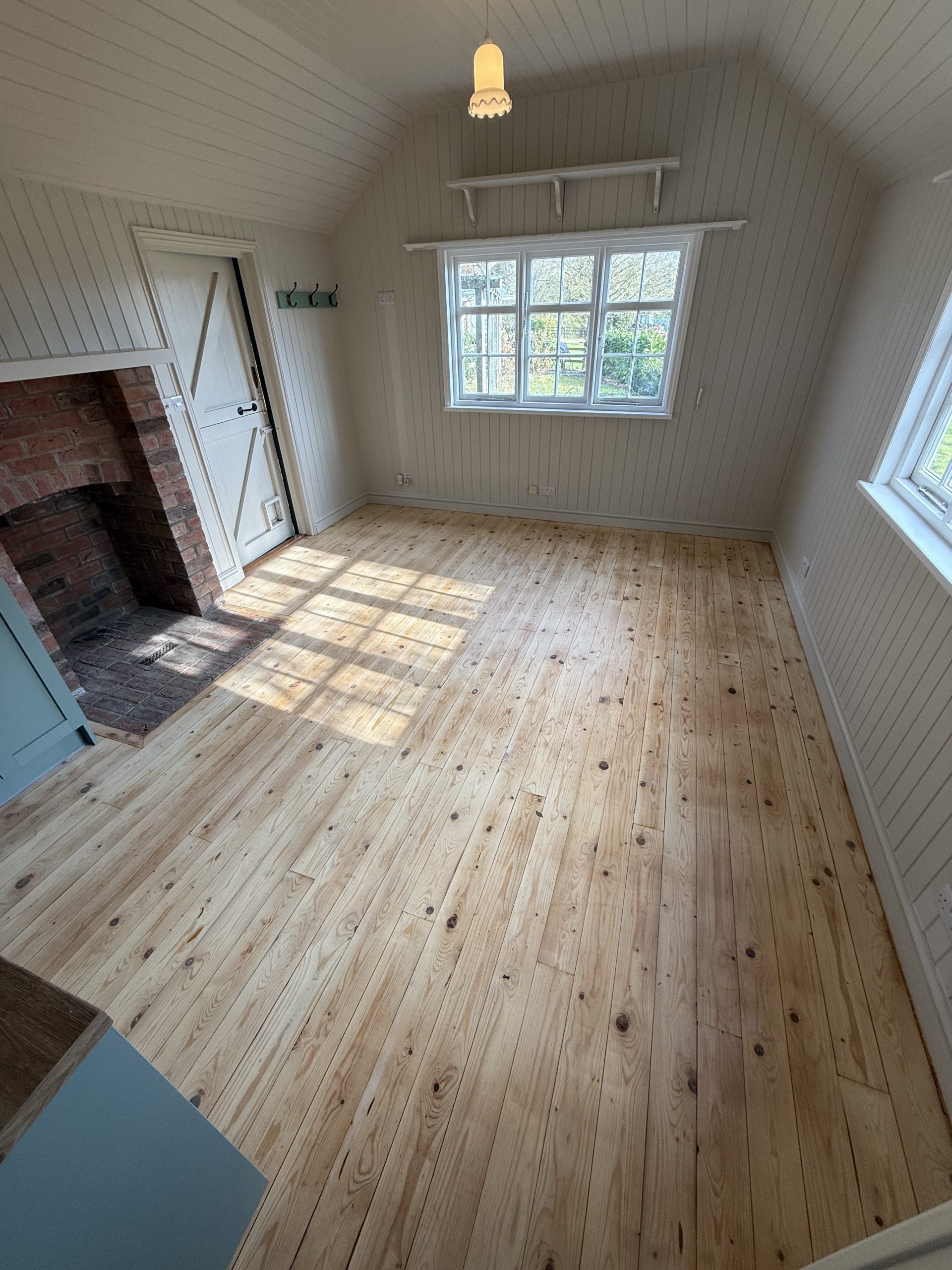 The original floorboards were sanded, treated, and finished with a rich stain that enhances the grain and adds depth to the entire space. It’s the kind of detail that makes you want to kick off your shoes and stay awhile.